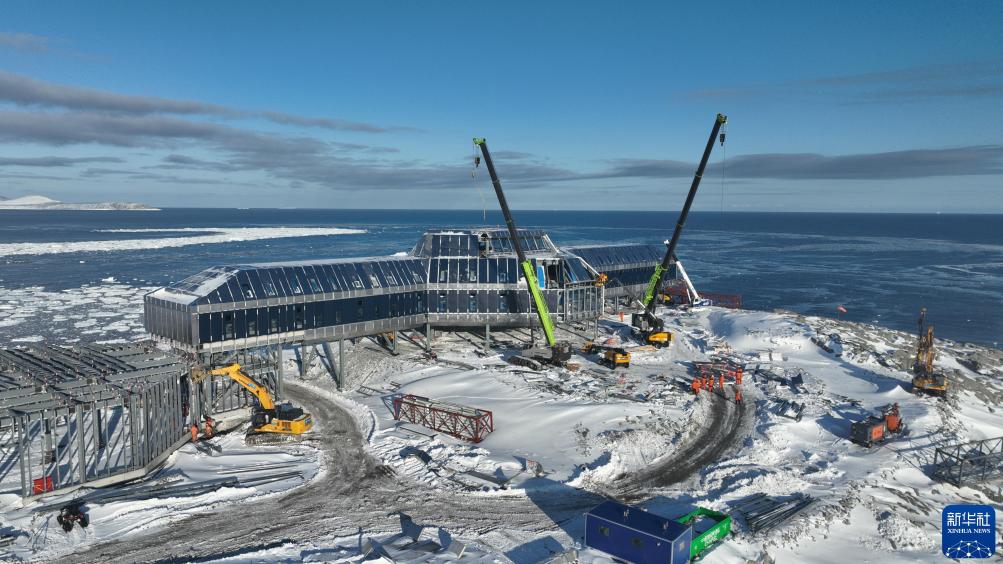 2024年1月25日拍攝的中國南極秦嶺站建設(shè)現(xiàn)場(chǎng)。新華社發(fā)(王海楠 攝)