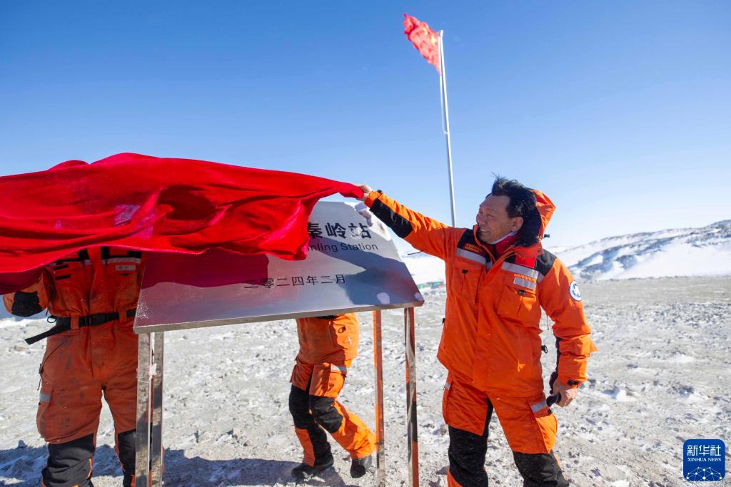 2024年2月7日在中國南極秦嶺站拍攝的揭牌儀式。新華社記者 周圓 攝