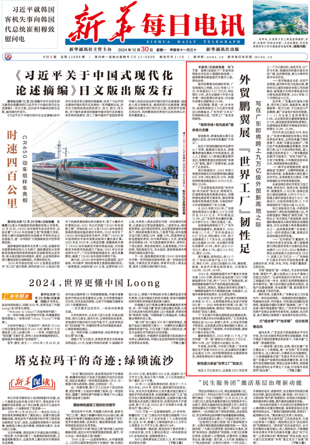 ——“五外聯(lián)動(dòng)”擴(kuò)量提質(zhì),內(nèi)外貿(mào)內(nèi)外資互促雙強(qiáng)。第三屆粵港澳大灣區(qū)服務(wù)貿(mào)易大會(huì)意向總發(fā)包金額約110億元;2024粵港澳大灣區(qū)全球招商大會(huì)簽約項(xiàng)目1933個(gè)、總額2.26萬(wàn)億元……廣東持續(xù)擴(kuò)大高水平對(duì)外開(kāi)放效果顯著,重點(diǎn)推動(dòng)外貿(mào)、外資、外包、外經(jīng)、外智擴(kuò)量提質(zhì)、互聯(lián)互動(dòng)。
