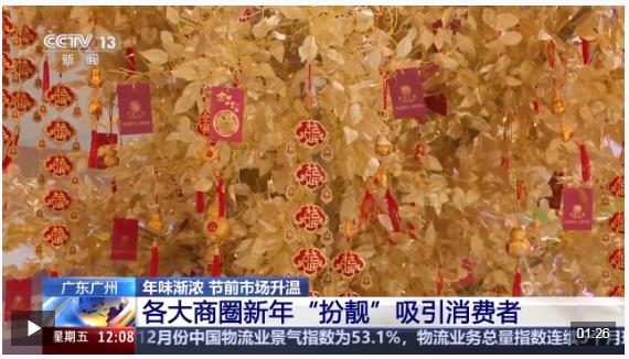 在廣州各大商圈,歡喜過大年的喜慶裝扮陸續(xù)煥新,有的擺上紅紅火火的“金錢樹”,有的在商場內設立各種展覽,增加消費者購物樂趣和文化體驗。