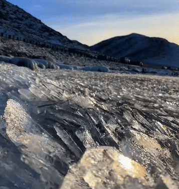 冰推是一種自然現(xiàn)象,一般發(fā)生在寒冷的冬季,藍色的湖面上無數(shù)散落的冰塊,在風力作用下,如“潮水”般不斷涌向岸邊,冰塊隨著波浪起伏相互碰撞,發(fā)出清脆的聲音,伴隨著風聲,猶如大自然的“鳴唱”。