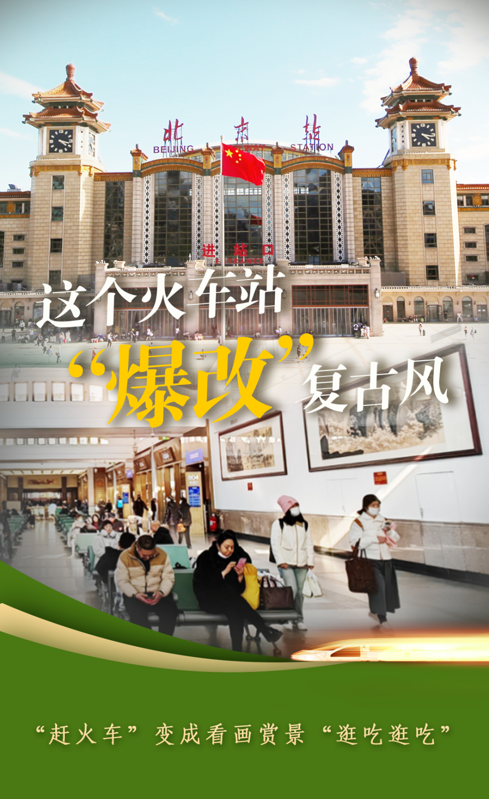 北京站之變折射出中國鐵路之變。文化味濃了,封閉的門拆了,洗手的水熱了,廁所的味沒了。今年春運,全國鐵路發(fā)送旅客有望突破5.1億人次。從“走得了”到“走得好”,中國鐵路正在高質量發(fā)展的道路上快步前行。(海報:胡傲霜)
