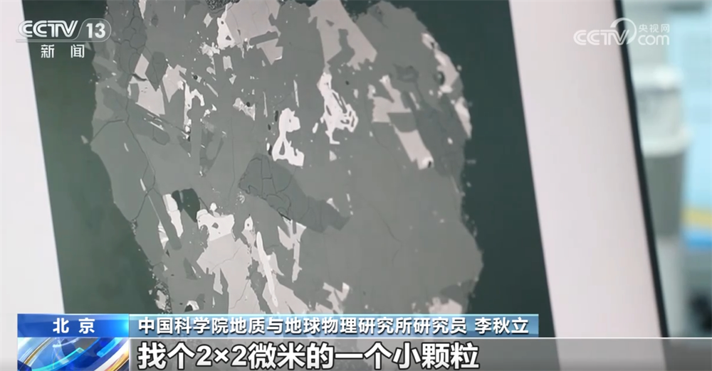 李秋立稱(chēng):“我們要在里邊首先找到記錄時(shí)間的小礦物,找出來(lái)之后變成離子激發(fā)出來(lái),它這里邊哪兒是定年礦物呢?要把它放到最小的這一顆白點(diǎn),是定年礦物。那么這顆巖屑的實(shí)物有多大?大概800微米,在這個(gè)800×800微米里邊找個(gè)2×2微米的一個(gè)小顆粒,在這么小的范圍可以激發(fā)它的,目前只有離子探針這個(gè)技術(shù),我們進(jìn)行了長(zhǎng)期訓(xùn)練,可以把它做到更小的范圍內(nèi)測(cè)得更準(zhǔn)的數(shù)據(jù)?!?/p>