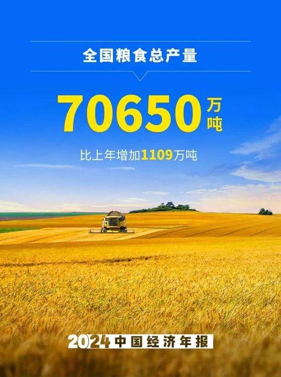 2、全國糧食總產(chǎn)量70650萬噸,比上年增加1109萬噸。