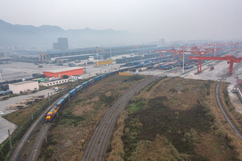 1月17日,一列滿載糖果等歐洲商品的中歐班列年貨專列順利抵達重慶團結(jié)村中心站。新華社記者 黃偉 攝