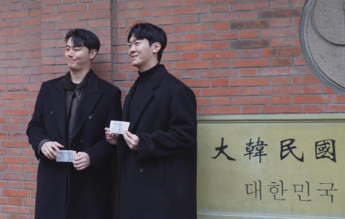 2025年1月,韓國(guó)游客在位于上海馬當(dāng)路的大韓民國(guó)臨時(shí)政府舊址門(mén)口拍照打卡。新華社記者張夢(mèng)潔 攝