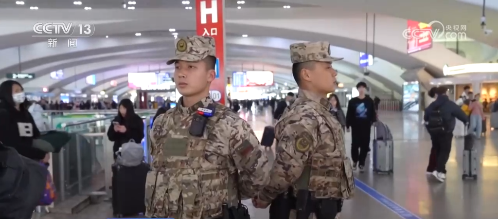 央視網(wǎng)消息:春運(yùn)期間,全國各地旅客出行顯著增加,擔(dān)負(fù)執(zhí)勤任務(wù)的武警部隊(duì)官兵堅(jiān)守執(zhí)勤一線,科學(xué)進(jìn)行人員編組,在機(jī)場、高鐵等人流聚集處加強(qiáng)警戒、疏導(dǎo)巡邏,為旅客安全出行保駕護(hù)航。