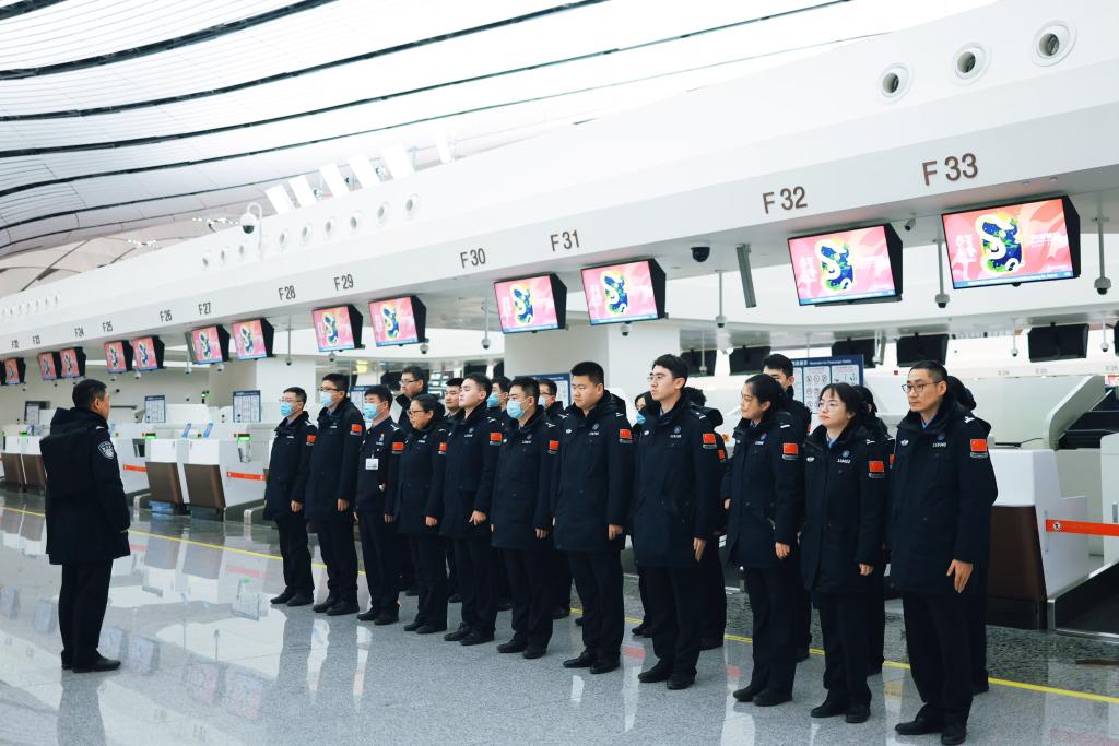 喜迎新春,大興機(jī)場(chǎng)邊檢站張貼了中國(guó)結(jié)、福字貼、春聯(lián),洋溢著濃濃年味。