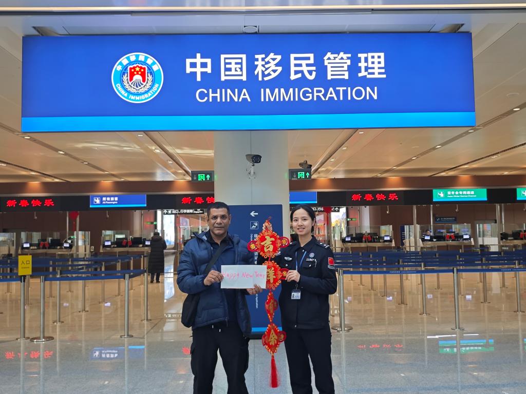 “歡迎回家!”“過(guò)年好!”“春節(jié)快樂!”移民管理警察的一聲聲問候,是旅客入境后感受到的第一縷中國(guó)溫暖。