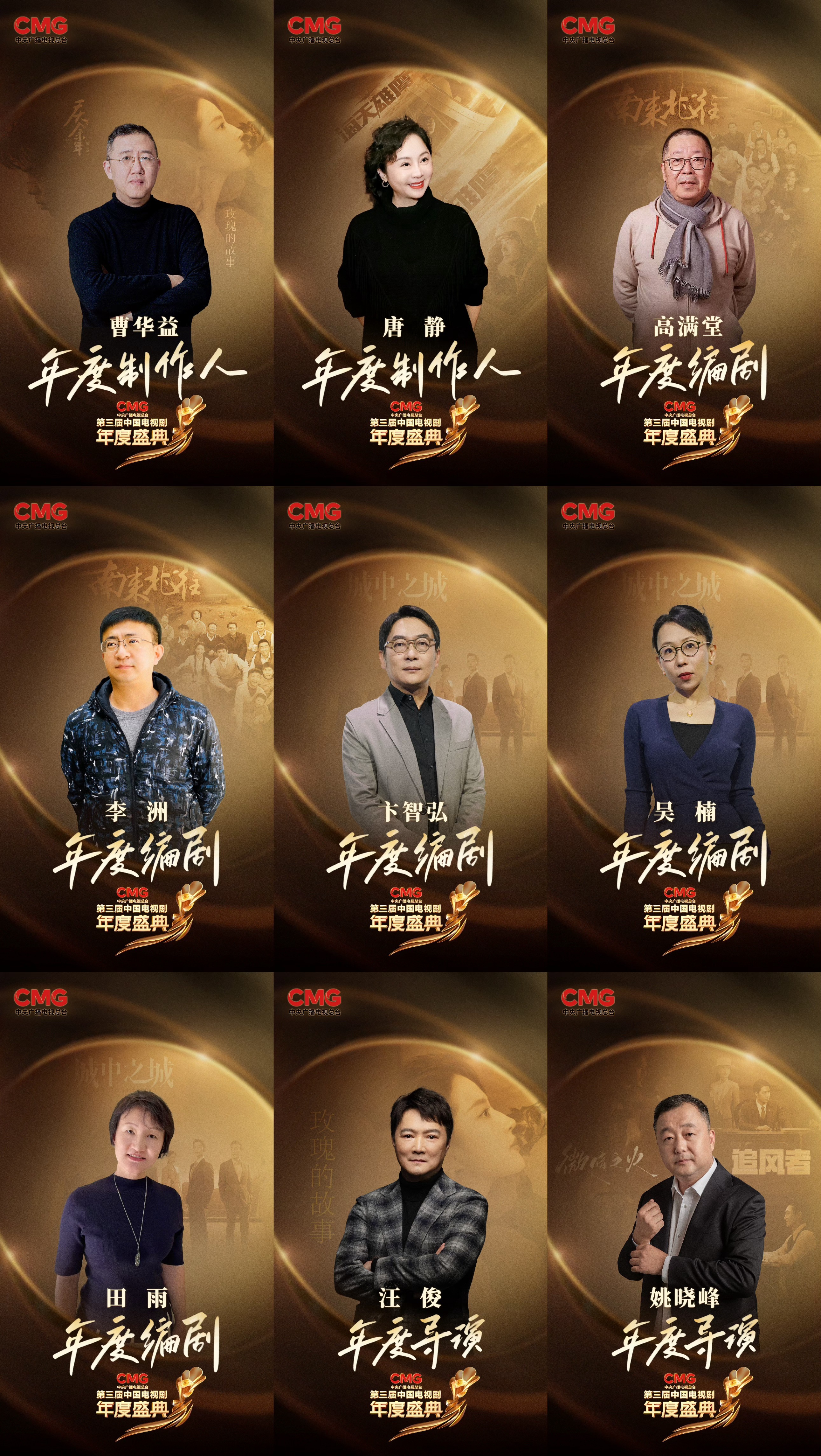 在創(chuàng)作創(chuàng)新與技術(shù)革新雙重驅(qū)動下,中國電視劇幕后工作者踔厲奮發(fā)、推陳出新,打磨出反映新時代、新氣象、新成就的誠意之作?!睹倒宓墓适隆贰稇c余年第二季》出品人曹華益、《海天雄鷹》出品人唐靜;《南來北往》編劇高滿堂、李洲,《城中之城》編劇卞智弘、吳楠、田雨;《玫瑰的故事》導演汪俊、《微暗之火》《追風者》導演姚曉峰分別獲得“年度制作人”“年度編劇”“年度導演”榮譽。