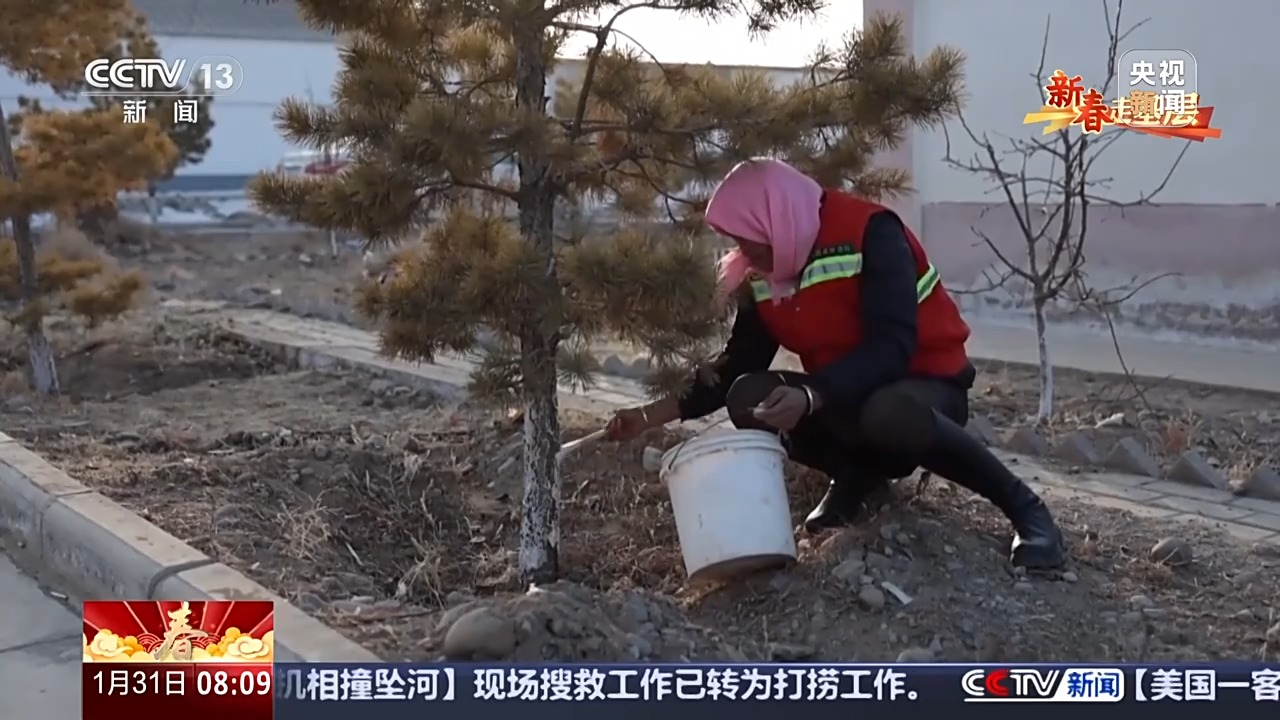 氣候惡劣、基礎(chǔ)設(shè)施薄弱、產(chǎn)業(yè)還未形成。面對(duì)這樣的困難,村干部們首先要解決的就是讓大家看到希望,能夠有事干、有錢掙、有奔頭。當(dāng)務(wù)之急是先防風(fēng)固沙、植樹造林,打好產(chǎn)業(yè)基礎(chǔ),避免群眾搬下來的生活再被風(fēng)沙裹挾。于是,每年的春秋兩季,縣上、鎮(zhèn)上的黨員干部、志愿者和村民就在移民點(diǎn)義務(wù)植樹。隨著“三北”六期林草工程項(xiàng)目陸續(xù)推開,村民還可以通過治沙造林務(wù)工,增加收入。2017年剛搬來時(shí),移民片區(qū)還只有零星的樹木;到2024年秋天,已經(jīng)有了各類苗木超過220萬株。