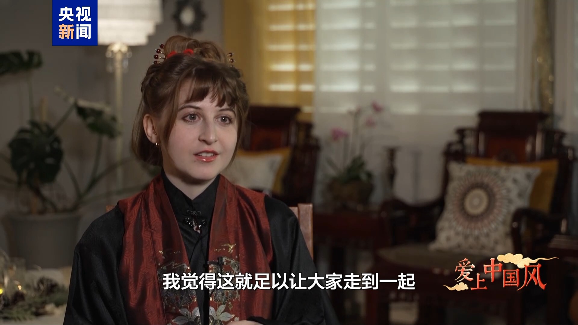 瑞秋:我在瀏覽網(wǎng)站的時(shí)候,我非常喜歡瀏覽時(shí)尚視頻,當(dāng)時(shí)看到了一個(gè)關(guān)于中國(guó)漢服的視頻,我當(dāng)時(shí)想這是什么?他們說(shuō),這是漢服的復(fù)興,年輕人正在把它帶回來(lái)。我覺(jué)得這太酷了。