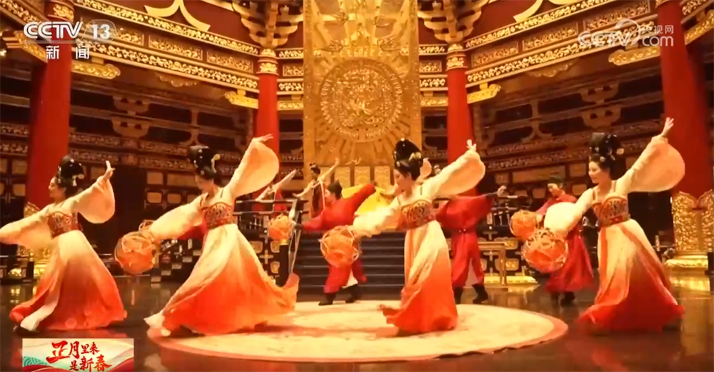 在河南鄭州星河里唐宮夜宴實景演繹文化園,春節(jié)限定節(jié)目《元正夜宴》正在精彩上演,游客可以近距離觀賞打魚燈、掛桃符、吃五辛盤等唐代過年文化。春節(jié)期間,每天都有近百場沉浸式古風演繹在這里上演,游客穿唐裝、品唐俗、吃唐席,一站式體驗傳統(tǒng)年俗。