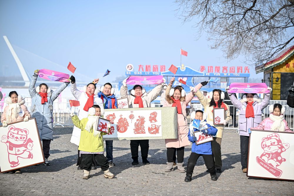 啦啦操、快閃合唱、街頭器樂(lè)演奏、國(guó)標(biāo)舞、冰雕制作……沿途,豐富多彩的群眾活動(dòng)營(yíng)造出滿滿氛圍感。在五星紅旗的掩映下,濱洲鐵路橋煥然一新,高校大學(xué)生置身大型亞冬會(huì)主題畫框,合唱《我和我的祖國(guó)》,留下精彩一瞬。