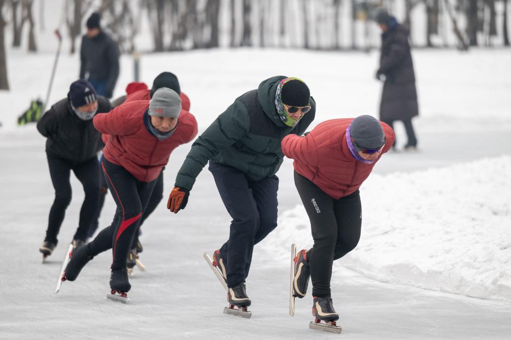 1月7日,滑冰愛好者在哈爾濱丁香公園內(nèi)滑冰。新華社記者 張濤 攝