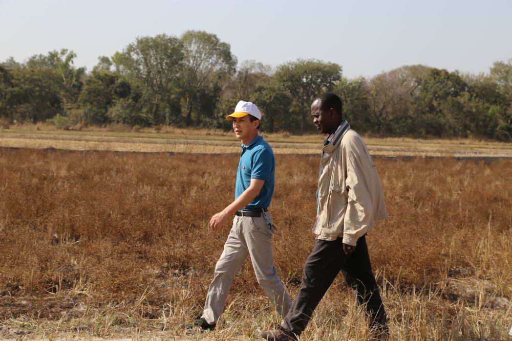 正月初一一早,吃完熱騰騰的湯面,專家們便驅(qū)車前往加布區(qū)的卡蘭塔巴農(nóng)場,查看水稻播種前的土地平整進度。通往農(nóng)場的唯一通道是一條坑洼不平的土路,雨季泥濘,旱季塵土飛揚,他們對此早已習以為常。