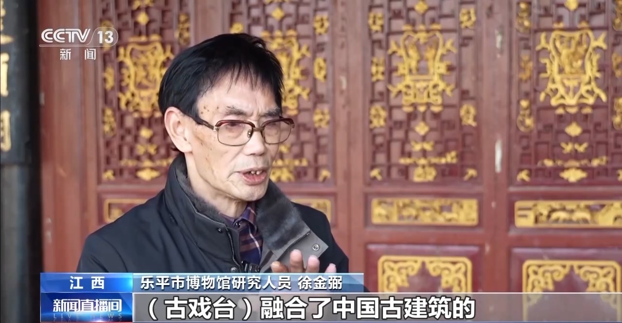 樂平市博物館研究人員 徐金弼:古戲臺(tái)融合了中國古建筑的基本重要的元素,雕工精湛,把徽派雕刻藝術(shù)全部集在一起。