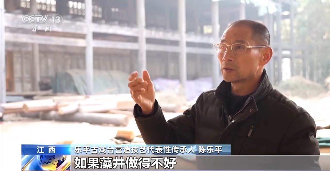 樂平古戲臺(tái)營造技藝非遺傳承人 陳樂平:古代人做螺旋頂,做得越好的,回音就響亮。如果藻井做得不好,古代沒有擴(kuò)音器,做得不好回音就回不出來。