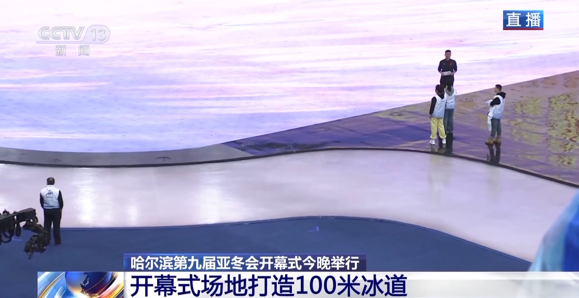 同時,第九屆亞冬會開閉幕式總制作人吳艷表示,今晚開幕式的場館也是亮點多多。為了在室內(nèi)場館中展現(xiàn)冰雪的特質(zhì),觀眾一進入場館,就能看到一條100米長的冰道,這條冰道呈飄帶狀,旨在讓觀眾近距離感受冰雪運動的魅力。