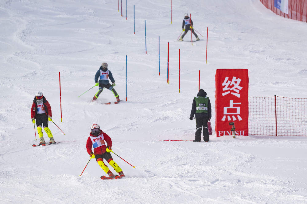 2024年12月22日,參賽選手在觀察男子回轉(zhuǎn)測(cè)試賽線路。當(dāng)日,2025年哈爾濱亞洲冬季運(yùn)動(dòng)會(huì)高山滑雪項(xiàng)目測(cè)試賽在黑龍江省亞布力體育訓(xùn)練基地(亞布力滑雪場(chǎng))舉行。