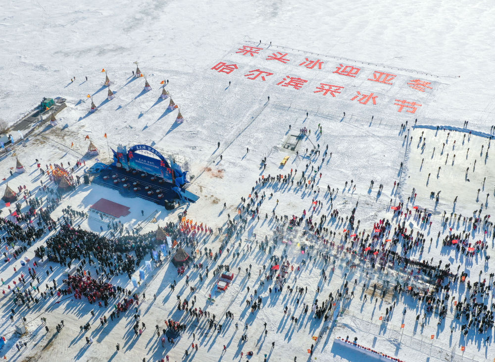 2023年12月7日拍攝的第四屆哈爾濱采冰節(jié)活動(dòng)現(xiàn)場(chǎng)。