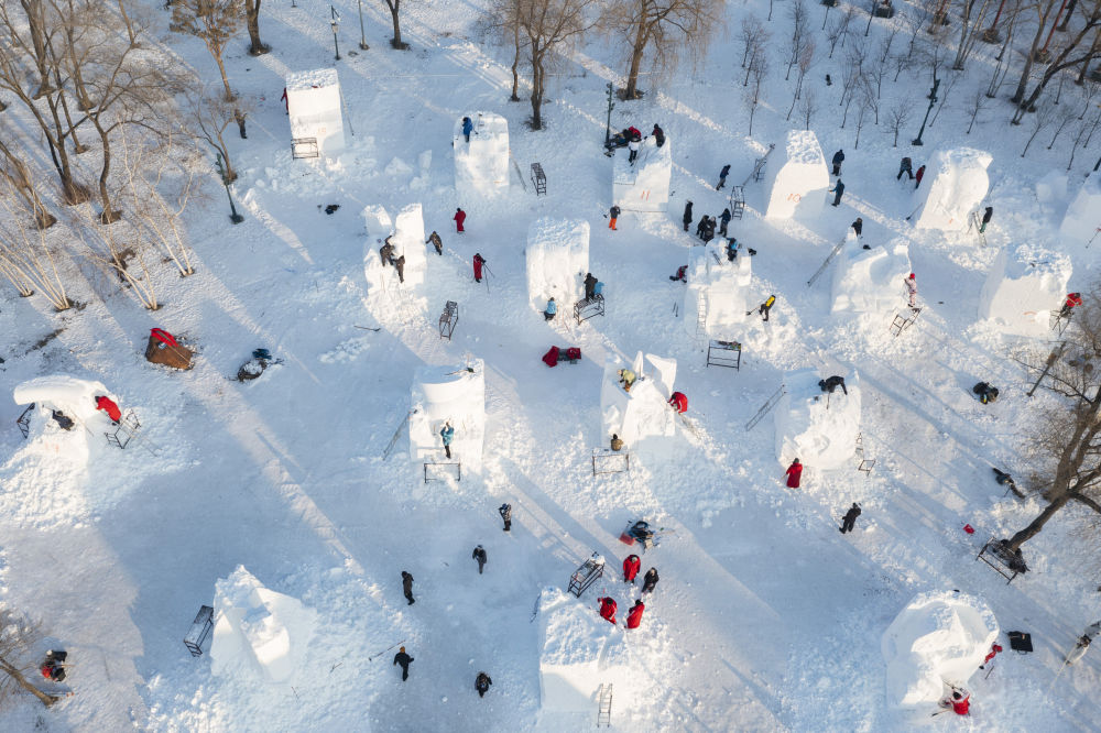 2025年1月6日,第27屆哈爾濱國(guó)際雪雕比賽參賽選手在雕刻雪雕作品。來(lái)自10個(gè)國(guó)家20余支代表隊(duì)的雪雕藝術(shù)家在哈爾濱太陽(yáng)島雪博會(huì)園區(qū)同場(chǎng)競(jìng)技。