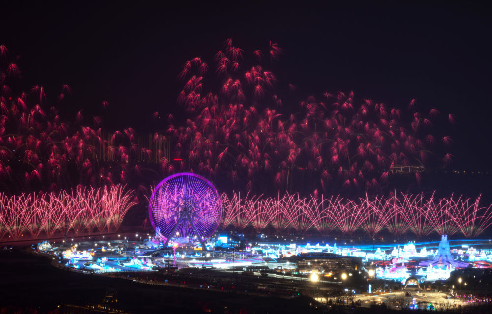 2025年2月7日,焰火在開幕式分會(huì)場(chǎng)上空綻放。