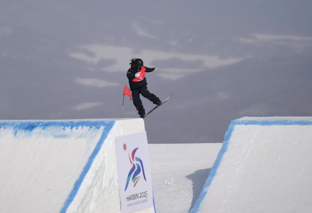 2月8日,李方慧在比賽中。當日,在第九屆亞冬會自由式滑雪女子U型場地技巧決賽中,中國選手李方慧獲得金牌,這是中國體育代表團在本屆亞冬會上的首枚金牌。新華社記者 夏一方 攝