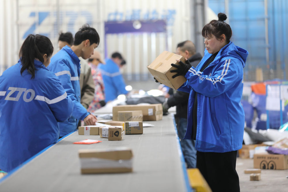 2025年1月30日,工人在湖南省永州市道縣中通快遞分揀中心分揀快遞件。新華社發(fā)(何紅福 攝)