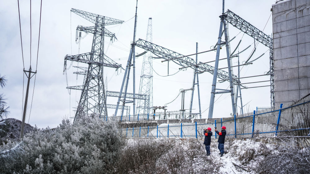 2025年1月26日,南方電網(wǎng)貴州六盤水鐘山供電局工作人員對轄區(qū)內(nèi)線路進行覆冰觀測。新華社記者 陶亮 攝