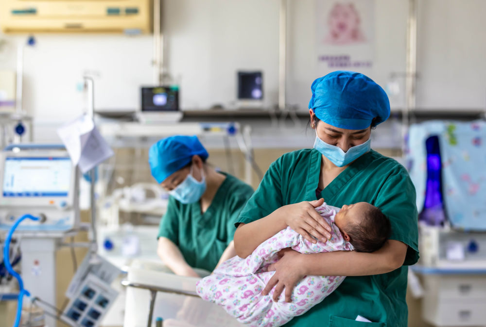 2025年1月29日,醫(yī)護人員在貴州省黔西市人民醫(yī)院新生兒科為新生兒做日常護理。新華社發(fā)(范暉 攝)