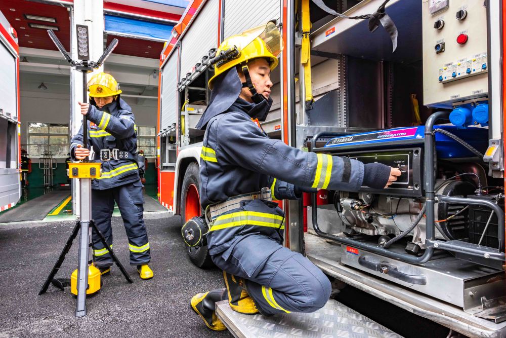 2025年1月29日,消防救援人員在貴州省安順經(jīng)濟技術(shù)開發(fā)區(qū)消防救援大隊檢查裝備。新華社發(fā)(陳熙 攝)