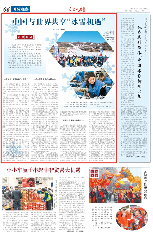 從人潮涌動(dòng)的室內(nèi)外滑雪場(chǎng),到“圈粉”全球游客的冰雪旅游景點(diǎn);從滿載冰雪裝備駛出國(guó)門的中歐班列,到紛紛加碼對(duì)華投資的外國(guó)冰雪企業(yè)……中國(guó)冰雪“冷資源”正在迸發(fā)“熱效應(yīng)”,為全球冰雪市場(chǎng)帶來(lái)暖意。正如新加坡《海峽時(shí)報(bào)》等外媒評(píng)論稱,中國(guó)冰雪經(jīng)濟(jì)發(fā)展將為世界提供更多機(jī)遇。