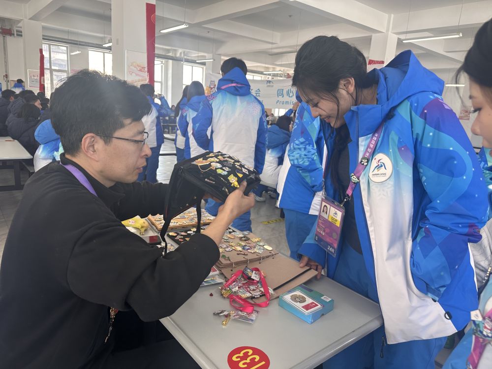 換“pin”,也就是交換徽章,在世界體育大賽中歷史悠久。在早期的奧運(yùn)會(huì)上,賽事參與者通過(guò)交換用于身份識(shí)別的圓形紙牌,表達(dá)對(duì)彼此的美好祝愿。如今,換“pin”已成為各大體育賽事中的社交傳統(tǒng),亞冬會(huì)也不例外。
