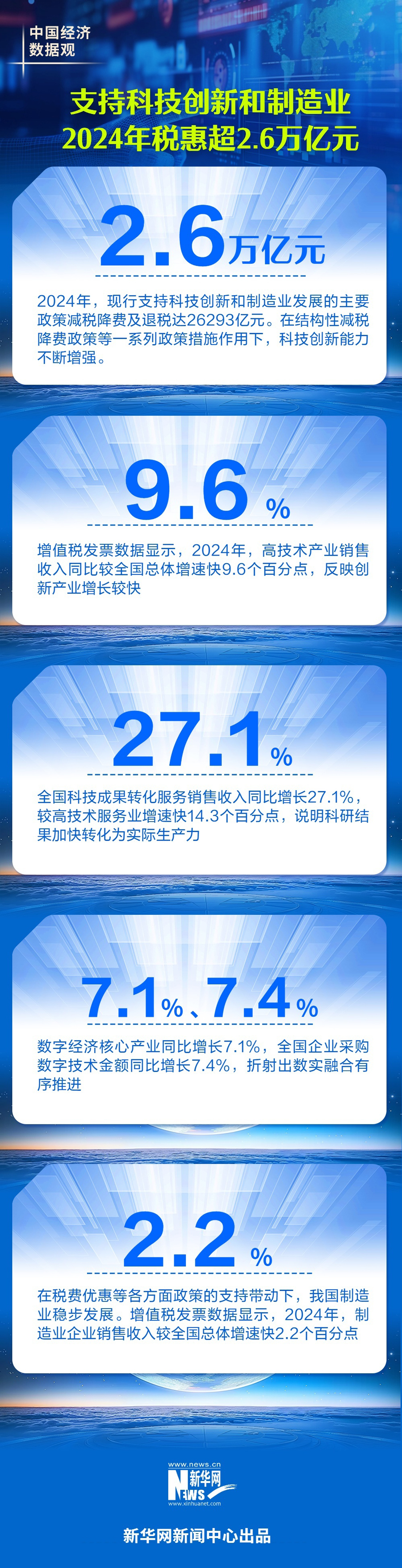中國經(jīng)濟(jì)數(shù)據(jù)觀|支持科技創(chuàng)新和制造業(yè) 2024年減稅降費(fèi)及退稅超2.6萬億元