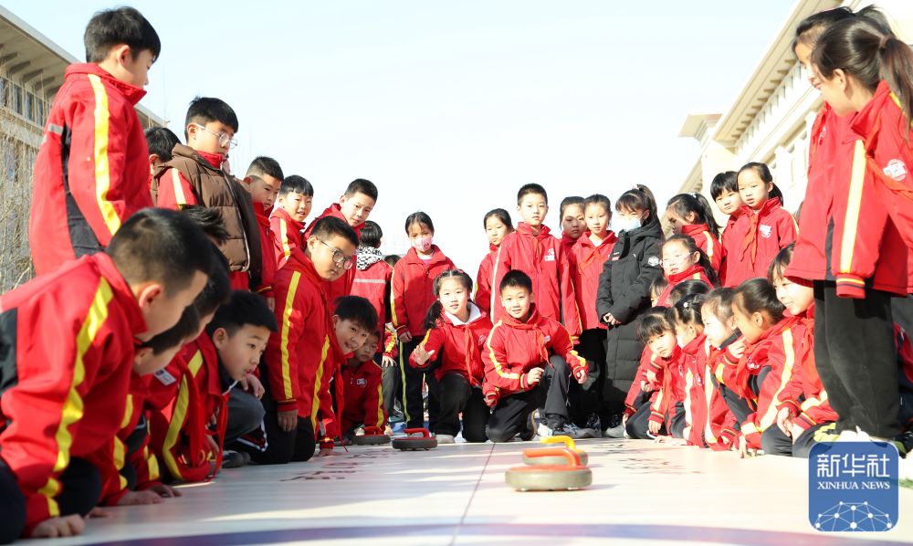 2月14日,河北省滄州市東光縣第三實(shí)驗(yàn)小學(xué)的學(xué)生們在課間參加陸地冰壺活動(dòng)。新華社發(fā)(周洋攝)