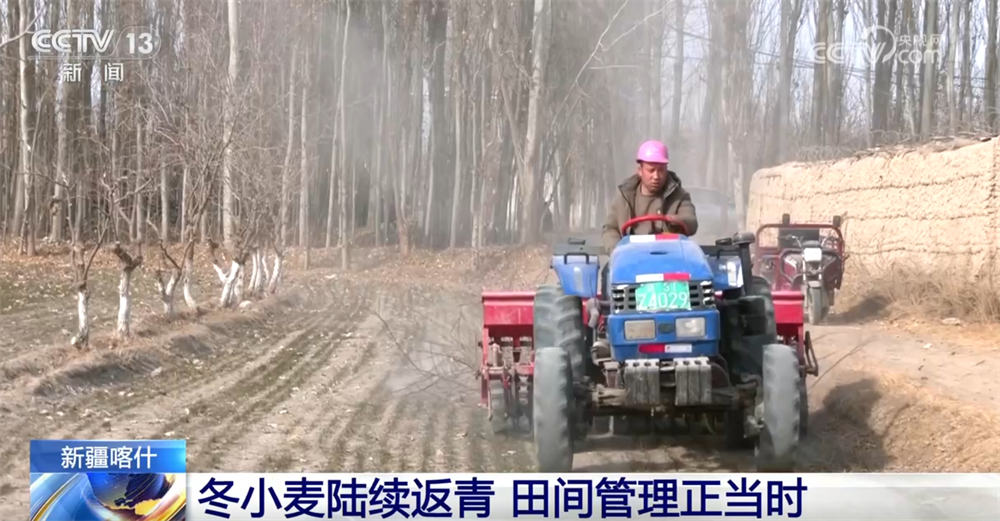 在新疆喀什阿依庫(kù)勒村,記者看到一袋袋肥料已碼放在地頭,拖拉機(jī)正在田間為冬小麥追施返青肥。為確??κ驳貐^(qū)冬小麥春季管理工作順利進(jìn)行,當(dāng)?shù)剞r(nóng)業(yè)部門結(jié)合當(dāng)前冬小麥的長(zhǎng)勢(shì)和天氣情況,科學(xué)指導(dǎo),組織做好冬小麥病蟲草害防治、保墑防凍、追肥等工作。