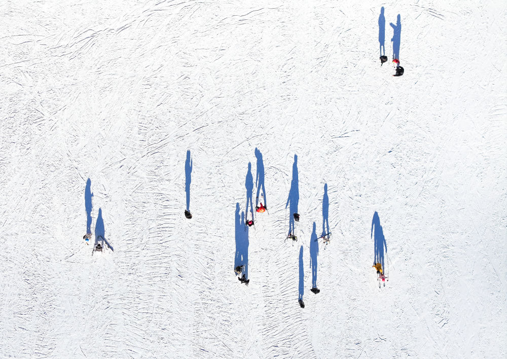 滑雪愛好者在內(nèi)蒙古呼倫貝爾扎蘭屯市金龍山滑雪場滑雪(無人機(jī)照片)新華社記者連振 攝