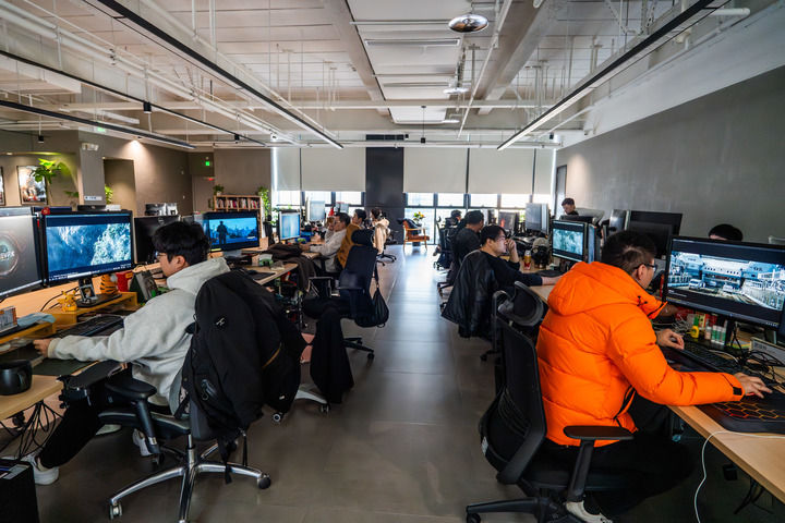 2月10日,墨境天合成都數字圖像科技有限公司的工作人員在制作動畫效果。新華社記者 薛晨 攝