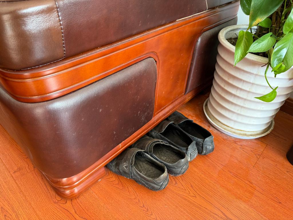 張義民辦公室里放著換下來的鞋子。新華社記者 郭敬丹 攝