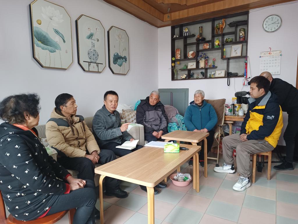 張義民(左三)在村民家中調研。(受訪者供圖)
