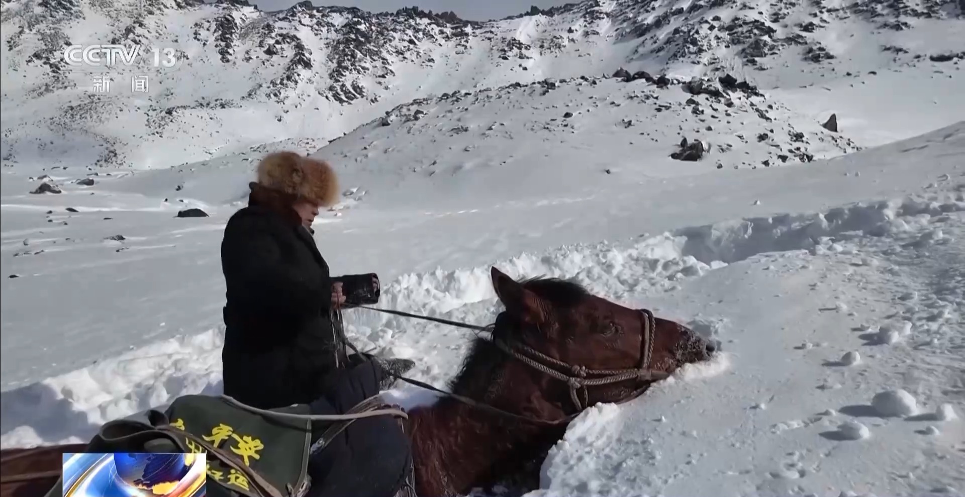 山上有很厚的積雪。即使有之前轉場的畜群踩出的路,也會很快被風吹雪覆蓋。剛上達坂,干部阿曼吐爾騎的馬一不留神就摔在雪窩里,好在積雪厚,人和馬都沒有大礙。