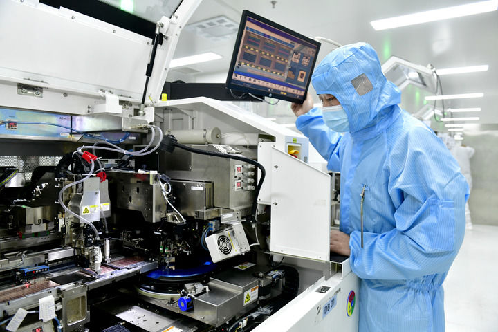 在江蘇昆山丘鈦微電子科技股份有限公司,無(wú)塵車(chē)間里一條條機(jī)械手臂穩(wěn)步移動(dòng),將指甲蓋大小的攝像頭拿起、檢測(cè)、再放回托盤(pán)。