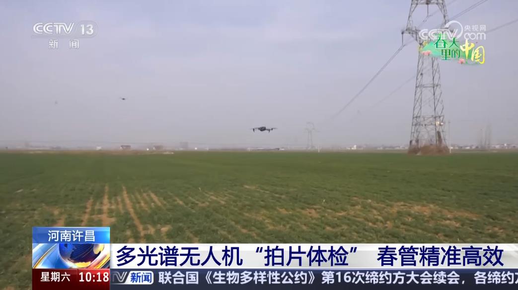 央視網(wǎng)消息:今年,全國冬小麥面積保持穩(wěn)定。目前,大部分地區(qū)冬小麥已進入返青起身期,在拔節(jié)孕穗。眼下,河南許昌的348萬多畝小麥陸續(xù)返青,進入促進苗情轉(zhuǎn)化升級、實現(xiàn)單產(chǎn)提升的關(guān)鍵期。今年,當?shù)剡\用多光譜無人機等智能設(shè)備,精確計算麥田水肥需求,讓春季田間管理更精準、高效。