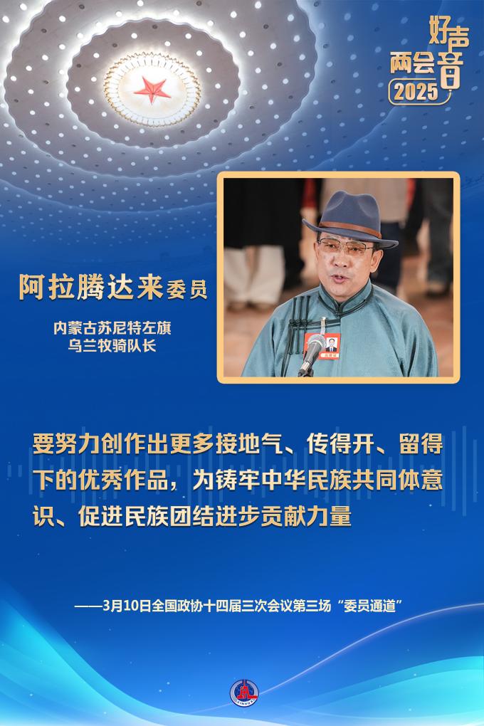 “在內(nèi)蒙古大地上,活躍著75支烏蘭牧騎隊伍,有3000多名隊員,每年開展演出1萬多場。”阿拉騰達來委員說,要努力創(chuàng)作出更多接地氣、傳得開、留得下的優(yōu)秀作品,為鑄牢中華民族共同體意識、促進民族團結(jié)進步貢獻力量。