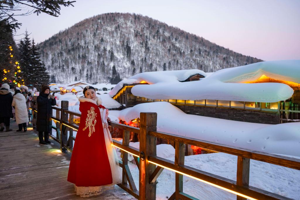 游客在“中國(guó)雪鄉(xiāng)”景區(qū)拍攝寫真。新華社記者謝劍飛 攝