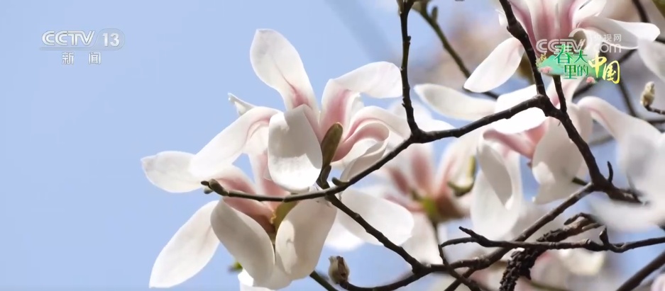 首先,跟隨鏡頭來到空中視角——碧綠的垂柳、清澈的泉水,還有格外搶眼的、潔白的春花。它究竟是誰呢?接下來,把視線拉回到地面。原來是公園里的望春玉蘭已經(jīng)掛滿了枝頭,為市民游客們帶來春天的氣息。望春玉蘭又叫望春花、迎春樹,作為濟南春天最早綻放的木蘭屬植物,被很多市民游客當做賞花季開始的信號。在色彩上,望春玉蘭既非純白的白玉蘭,又不像鮮艷的紫玉蘭,而是呈現(xiàn)出一種由紫到白的漸變色,這種色彩仿佛從花的基部逐漸滲透出來,顯得淡雅別致。每當春風拂過,這里便會有暗香浮動,讓春天的氣息既能看得見,又能聞得著。