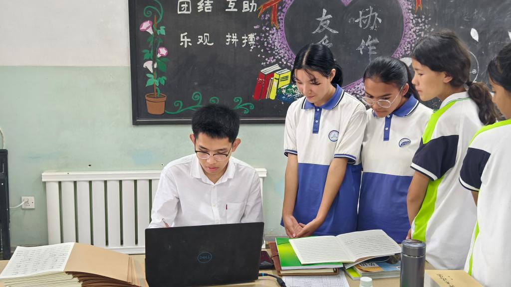 同樣來自山東的小伙兒蓋彥吉對支教事業(yè)抱有激情。2024年夏天,從中國農(nóng)業(yè)大學(xué)本科畢業(yè)后,他參加了學(xué)校的西部計劃研究生支教團,來到莎車縣第三中學(xué)任教。在教學(xué)工作中,蓋彥吉發(fā)現(xiàn),青年教師的天然親和力,能更好激發(fā)學(xué)生的求知欲。