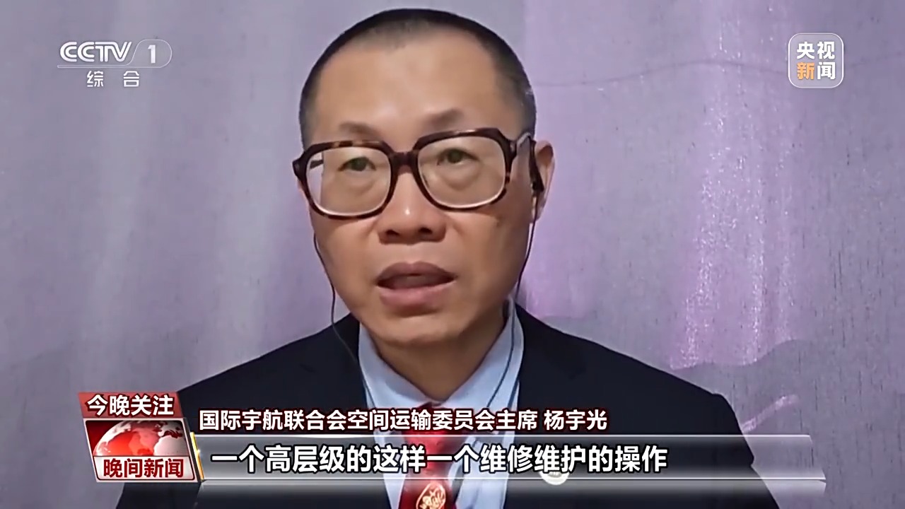 國(guó)際宇航聯(lián)合會(huì)空間運(yùn)輸委員會(huì)主席 楊宇光:我們已經(jīng)開(kāi)始對(duì)空間站高層級(jí)的維修維護(hù)操作,同時(shí)這些活動(dòng)本身也在為我們未來(lái)更復(fù)雜、更具挑戰(zhàn)性的出艙活動(dòng)奠定基礎(chǔ)。