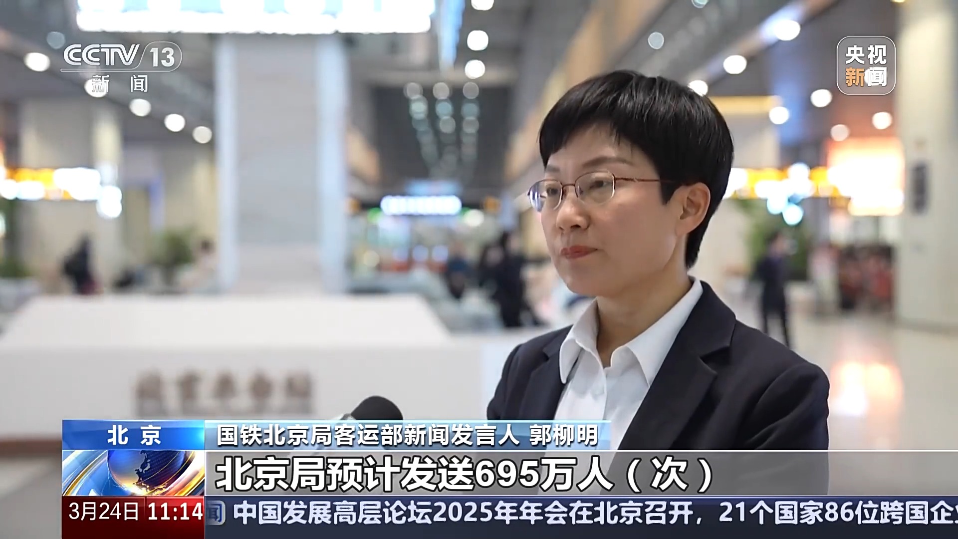 國鐵北京局客運部新聞發(fā)言人 郭柳明:清明運輸期間5天,北京局預(yù)計發(fā)送695萬人次,同比增幅4.6%。高峰日在4月4日,預(yù)計發(fā)送165萬人次。客流主要集中在濟南、太原、鄭州、沈陽、青島、西安以及北京至天津、保定、石家莊、張家口往返間。